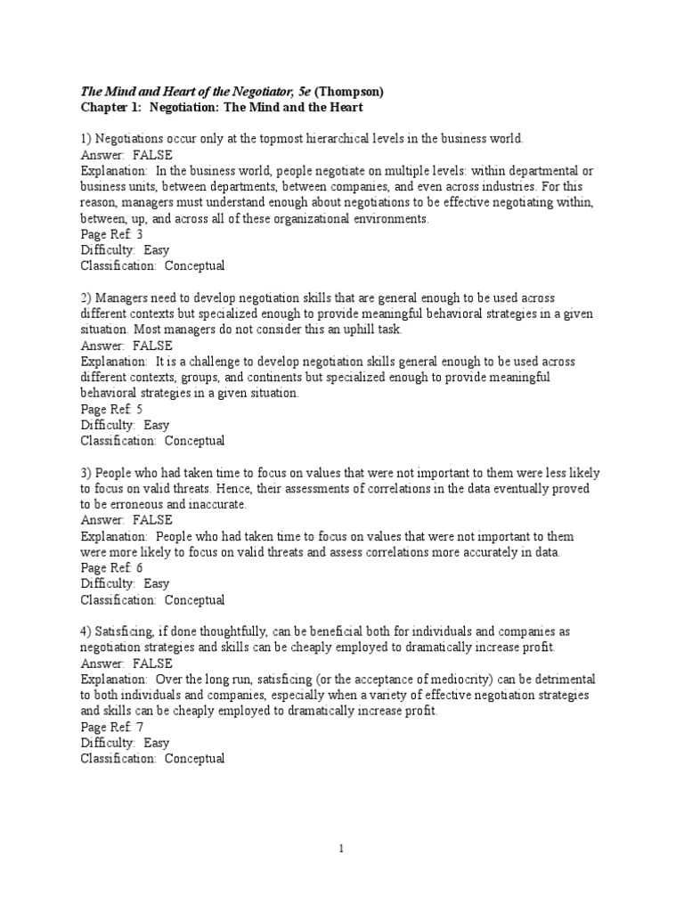 Chapter 1 The Mind And Heart Of A Negotiator 5e Bargaining