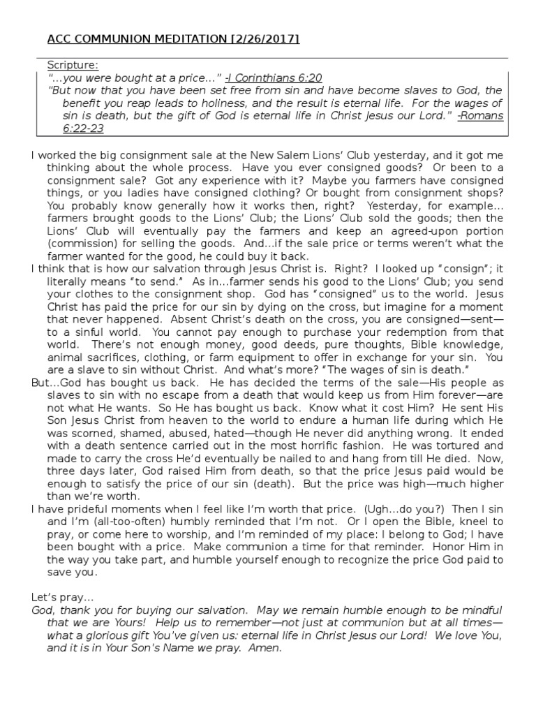 Acc Communion Meditation 26feb2017 Eternal Life Christianity Sin