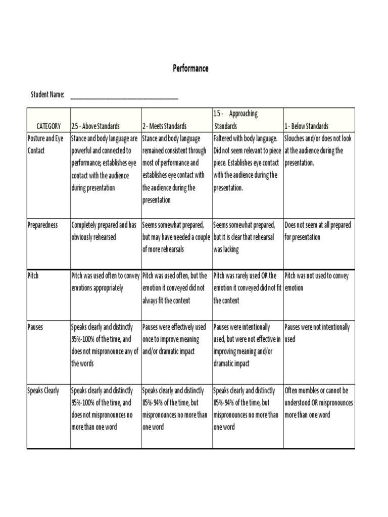 Rubric Pg 2 Body Language Interpersonal Communication