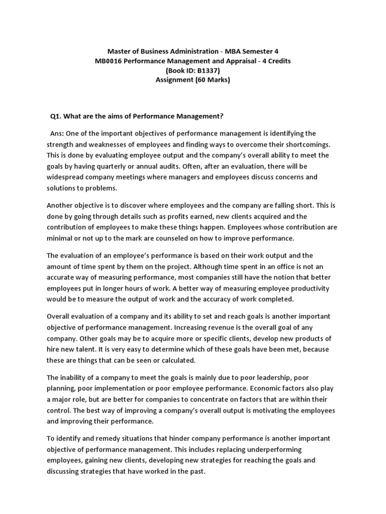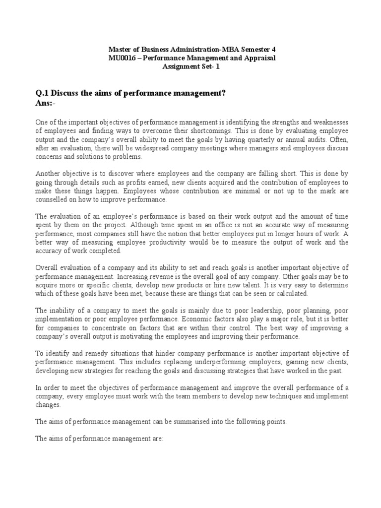 Mu 0016 Set 1 Set 2 Performance Appraisal Performance Management