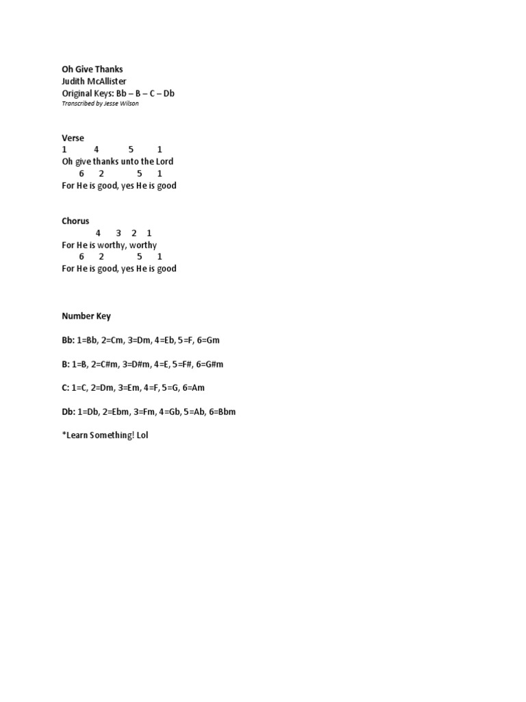 Give Thanks Chords And Lyrics The 1 7 6 3 4 3 6 5 Progression