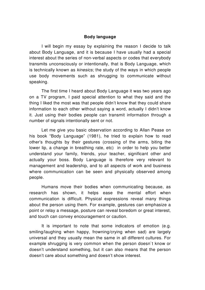 Essay On Body Language Reasearch Essay Writings From Hq Specialists