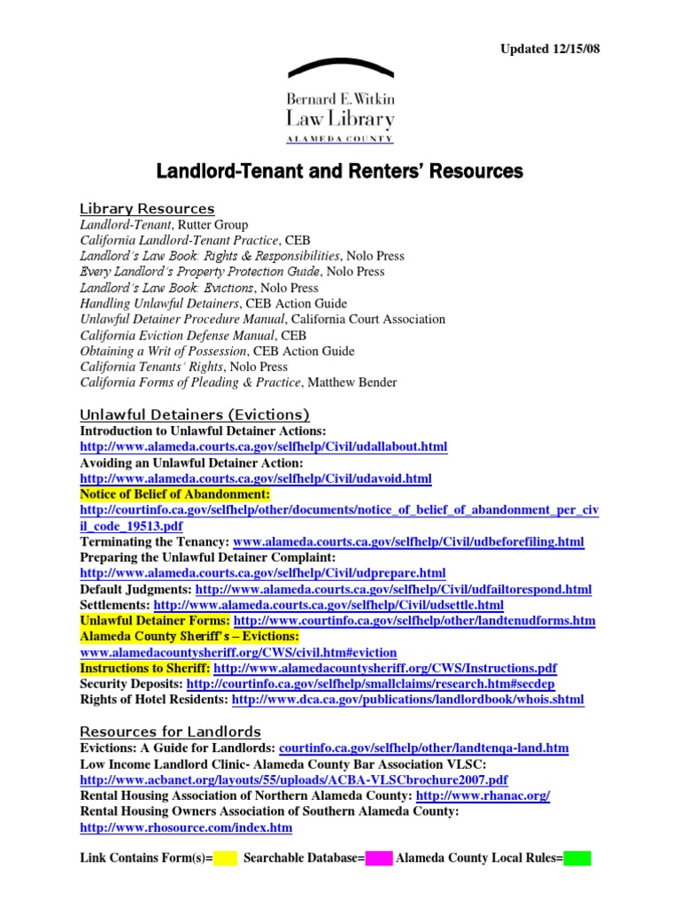 Landlord Tenant Renters Resources Eviction Leasehold Estate