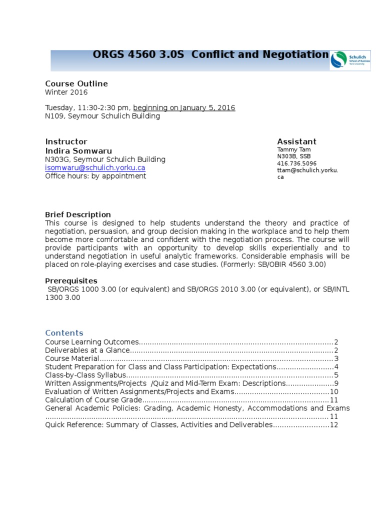 Orgs 4560 S Course Outline Winter 2016 Negotiation Grading