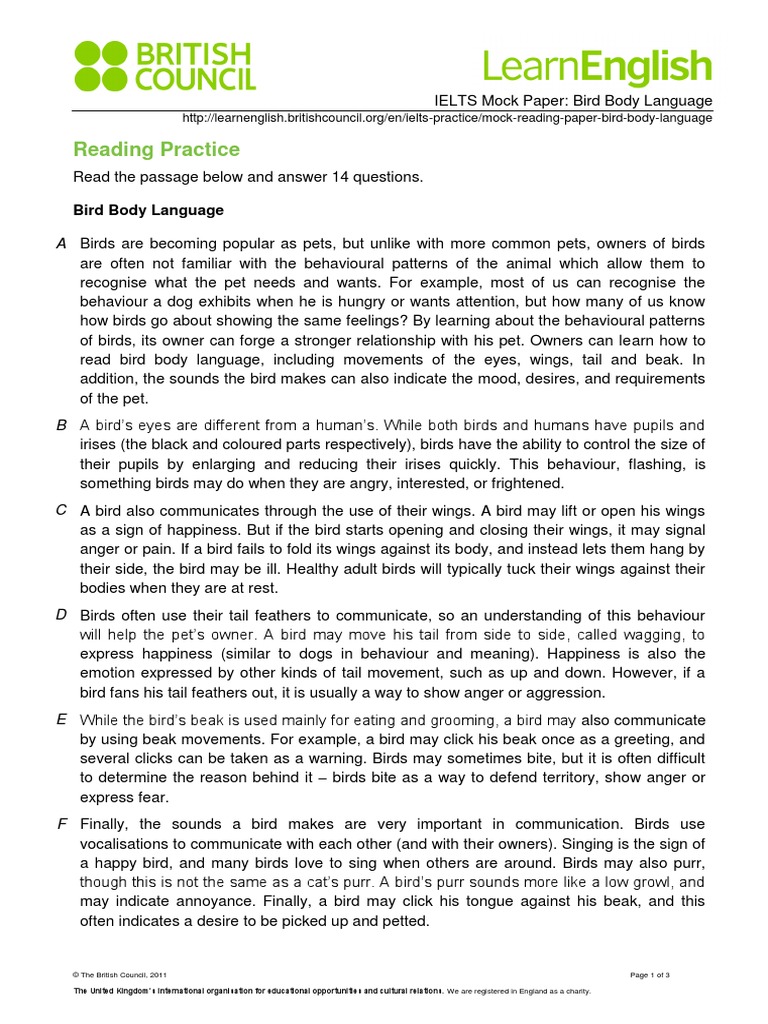 Ielts Reading Bird Behaviour Body Language Birds