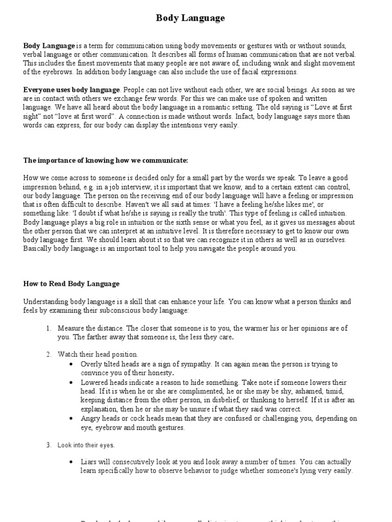 Importance Of Body Language In Communication Essay Body Language