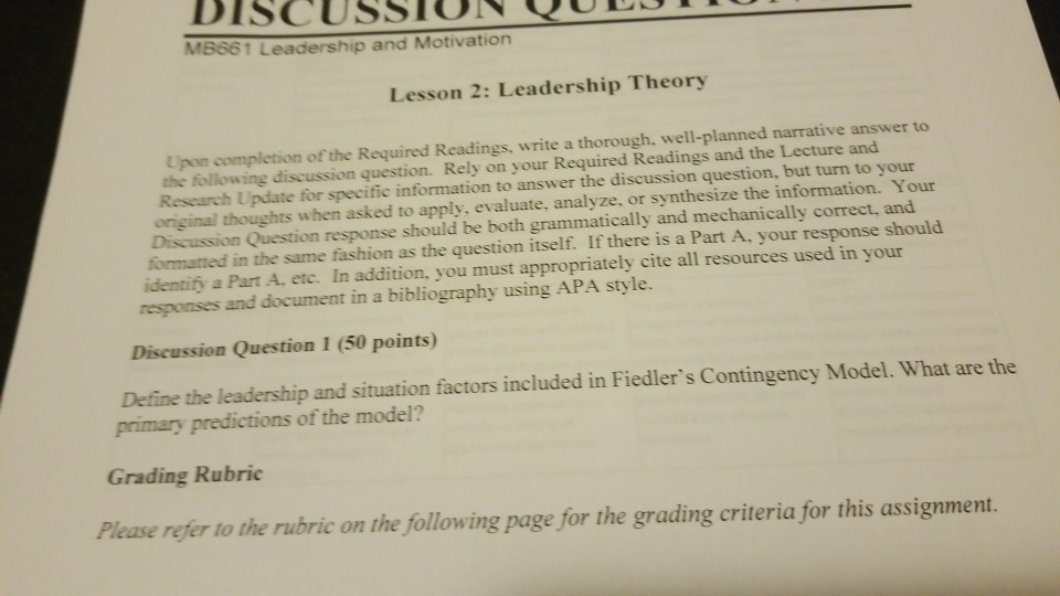 Activity 1 Mb661 Leadership And Motivation Lesson Chegg Com