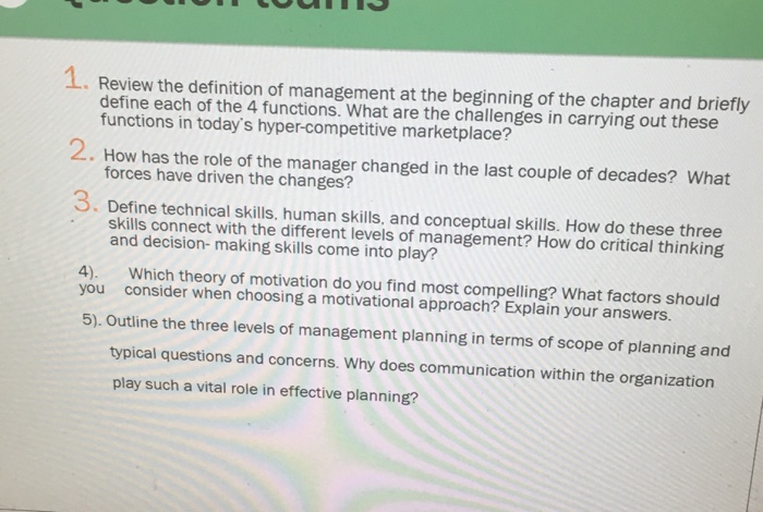 Solved Review The Definition Of Management At The Beginni