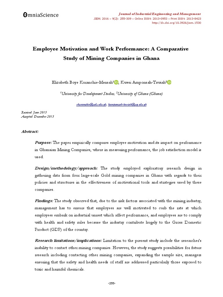 Owners managers and supervisors know positive motivation leads to better performance and higher. By thomas owusu a thesis submitted to the institute of distance learning kwame nkrumah university of science and technology in partial fulfilment of the requirements for the degree of commonwealth executive of masters in business administration institute of distance learning knust april 2012.