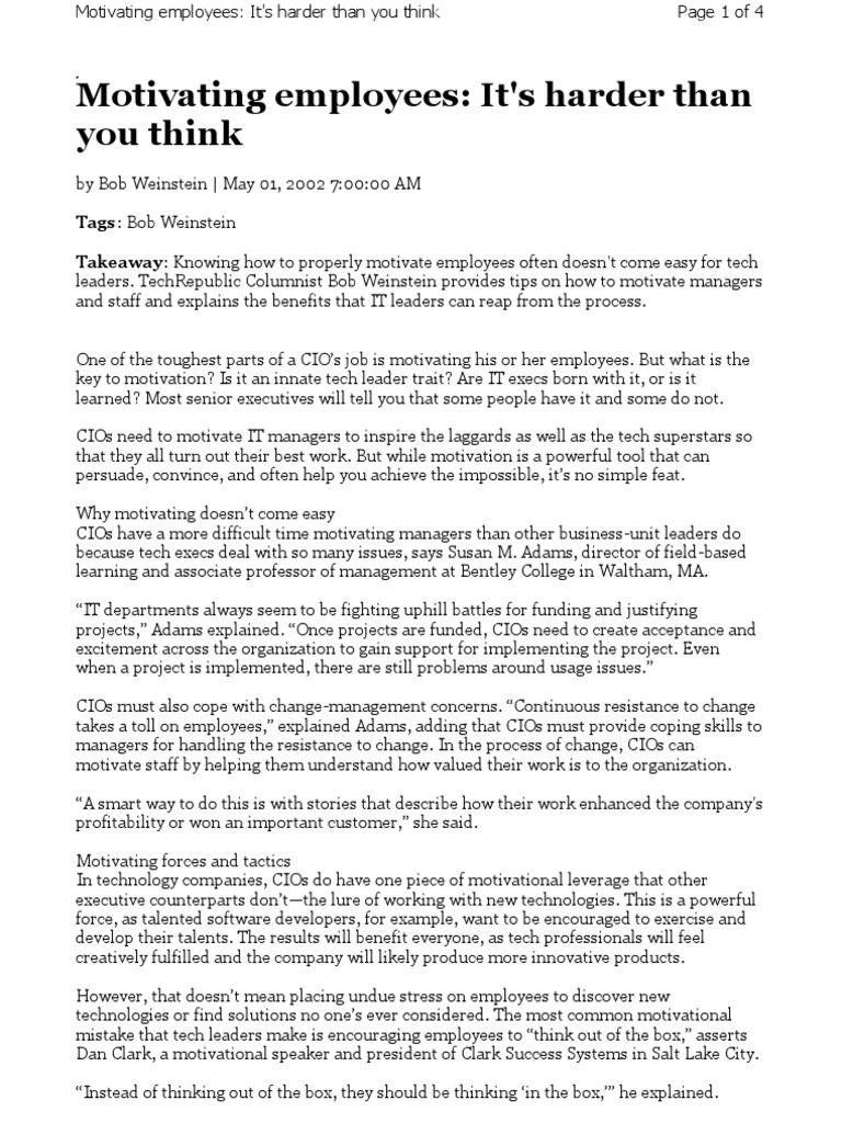 Pdf Bpir Management Brief Issue 7 Motivating Staff