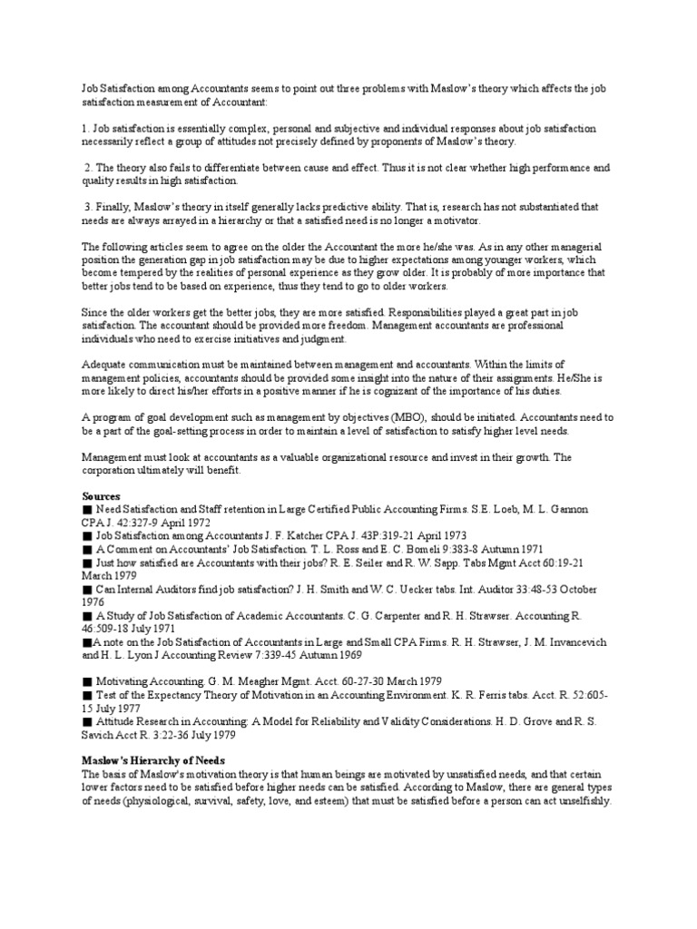 Job Satisfaction Among Accountants Seems To Point Out Three Problems