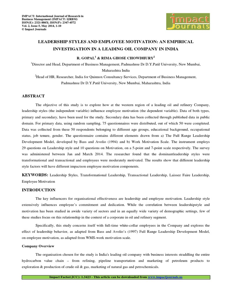 Pdf The Impact Of Leadership Style On Employee S Motivation